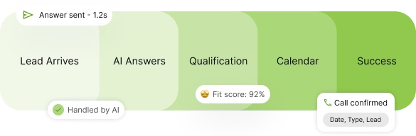 Leads get instant responses 24/7. Your team focuses on qualified conversations, not answering the same questions 50 times. Conversion rates improve because speed-to-lead is measured in seconds, not hours.