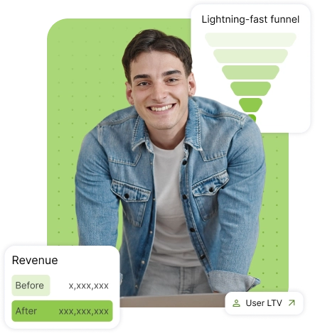 Lightning-fast funnel engineering with strategic upsells that turn more clicks into customers and increase what each customer spends.